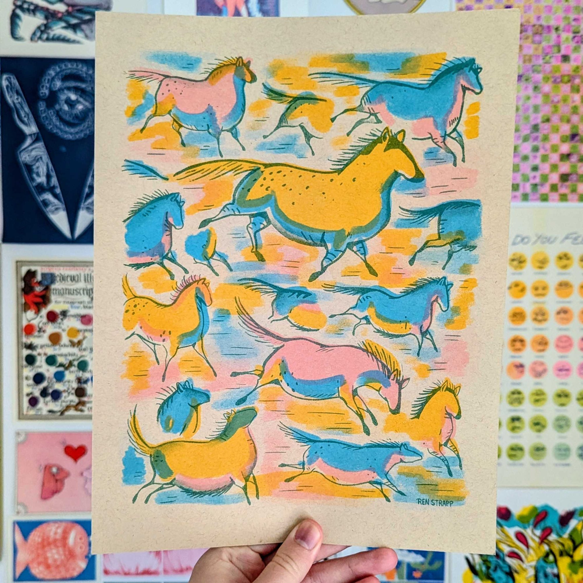 Neolithic horses running directly to make the walls of your home a cozy cavern at the dawn of humanity. These chubby cave painting horses will be shipping later in December 2025.